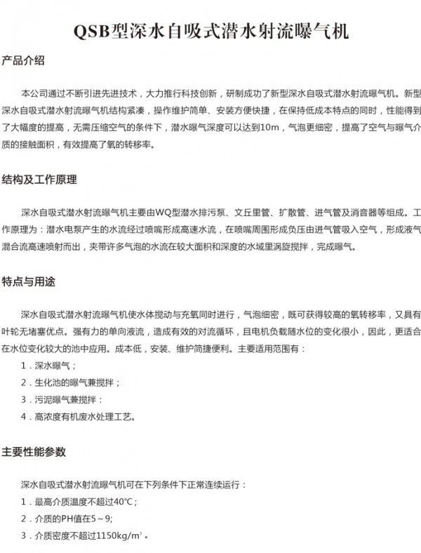 QSB深水自吸式潜水射留曝气机
